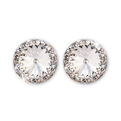 These dramatic earrings are made with a center rivoli stone and feature a pierced back. Meets CPSIA standard for children's jewelry. Best value when purchased in a package of 6 pairs. Can also be purchased as a single pair.