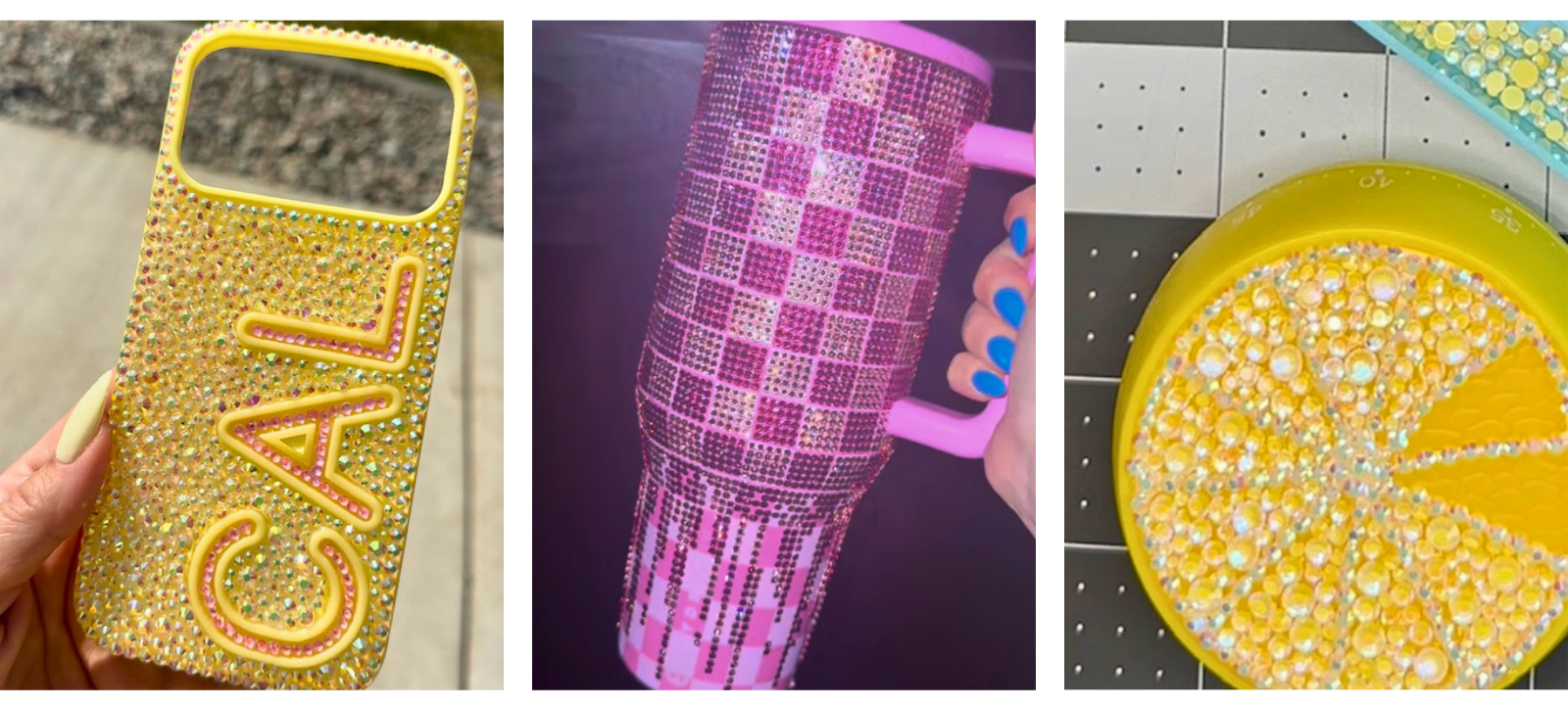 From phone cases to drinkware, Johnette brings personality and shine to everyday items. These are the pieces that make people smile when they see them.