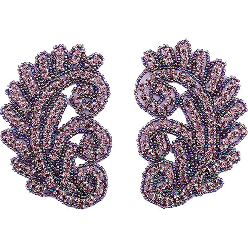 Exclusive closeout pricing on Priceless Crystal Applique 614 Light Amethyst! This elegant pair features sparkling light amethyst crystals arranged in a refined decorative silhouette—perfect for adding soft, romantic color to gowns, bridal wear, dance costumes, pageant attire, and other special-occasion designs. This discontinued style is available only in limited quantities—once sold out, it will not return.