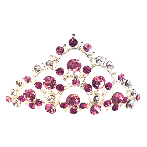 Exclusive closeout pricing on the Small Tiara in Light Rose and Rose! This delicate tiara sparkles with a beautiful blend of Light Rose, Rose, and Crystal stones arranged for soft, feminine radiance. Perfect for dancers, pageant contestants, skaters, or bridal parties, this elegant accessory adds timeless charm and stage-worthy shine. The tiara measures approximately 3" wide by 1.5" tall and is secured comfortably with a single comb positioned behind the front piece. Once sold out, it will not return.