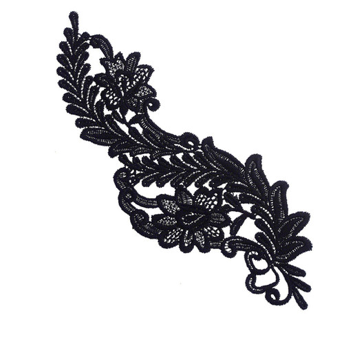 Chic and versatile, the Black Vine A Applique adds bold contrast and sleek style to any project. Its flowing vine shape and deep black tone make it a go-to choice for modern, gothic, or formal costume designs. This item is discontinued and only available while supplies last.