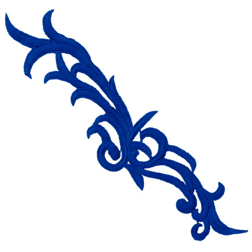 The Blue Venus B Applique was a popular choice for bold, elegant designs in dancewear, formal costumes, and competitive performance attire. Measuring 11.5 inches tall by 2.5 inches wide, this vertically oriented applique featured a rich blue tone and slim embroidered silhouette—perfect for rhinestone embellishment or mirrored placement on bodices and skirts.