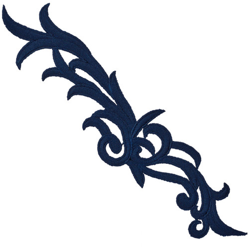 The Navy Venus B Applique was a classic choice for adding deep, rich color to performance costumes, uniforms, and formalwear. Measuring 11.5 inches tall by 2.5 inches wide, this vertical embroidered applique offered a sleek silhouette perfect for center placements, bodices, or symmetrical accents. Its navy tone provided a dramatic base for rhinestone embellishments and layered design elements.