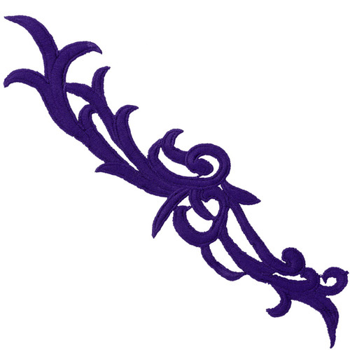The Purple Venus A Applique was a regal and expressive embellishment perfect for standout costume designs and stagewear. Measuring 11.5 inches tall by 2.5 inches wide, this vertically shaped applique featured deep purple embroidery and a sleek silhouette ideal for symmetrical placement, centerline accents, or layering over mesh and fabric. Popular among dancers, performers, and costume designers, it offered a bold foundation for rhinestone customization.
