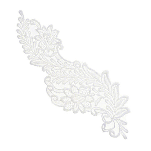 Classic and clean, the White Vine A Applique features an elegant embroidered vine design in bright white. Ideal for bridal looks, angelic costumes, or winter-themed outfits, this applique is the perfect canvas for adding sparkle with rhinestones. This item is discontinued and available only while supplies last.