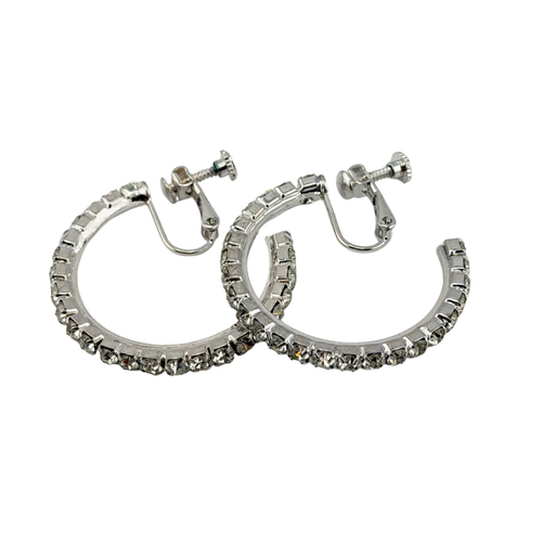 Exclusive closeout pricing on Earring Hoop 20989 Crystal! These elegant crystal-lined hoops feature a screw-on clip back, making them perfect for non-pierced ears. The hoops are set with sparkling clear crystals in a silver-tone channel setting for a classic, timeless shine. Once sold out, this style will not return.