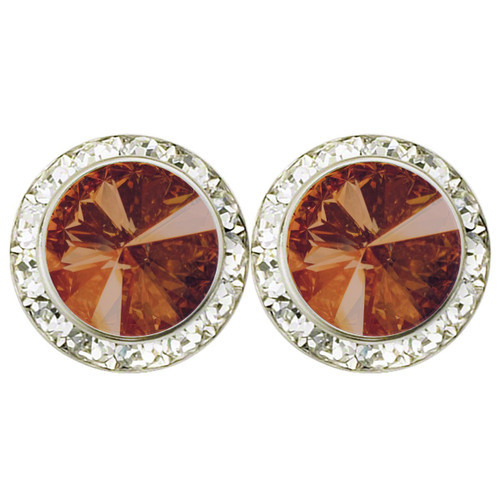 Exclusive closeout pricing on the Starlight Crystal Earrings 15mm Performance in Venus/Gold (Pierced)! These bold performance earrings feature a brilliant 15mm Venus/Gold rivoli center stone crafted from premium European crystal. Set in a classic pierced design, they deliver maximum sparkle for stage, competition, or special events. Once sold out, they will not return.
