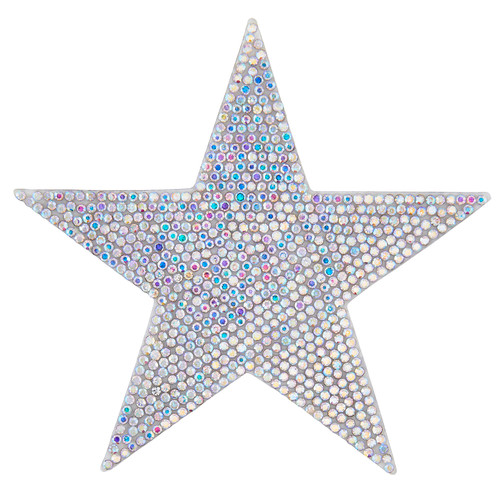 PriceLess Crystal Star Crystal AB Large | 9cm x 9.7cm- 3 Pack. Each Star is self adhesive with a strong adhesive for application on most hard surfaces. For fabric, use the self adhesive application and then, using a barrier material, apply heat for extra strong adhesion.