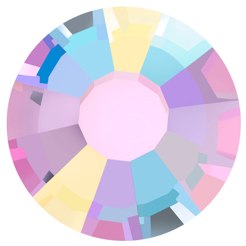The Aurora Borealis (AB) finish adds a radiant, multicolored glow over the crystal base. This effect enhances sparkle and creates a dynamic shine that shifts with light and movement, making it a favorite among designers and performers alike.