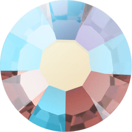 The Aurora Borealis (AB) finish adds a radiant, multicolored glow over the crystal base. This effect enhances sparkle and creates a dynamic shine that shifts with light and movement, making it a favorite among designers and performers alike.