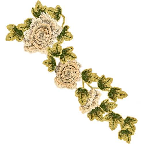 This soft, floral applique in a sand tone features layered petals and embroidered leaves for a beautiful dimensional effect. Perfect for costumes, accessories, or one-of-a-kind DIY projects.