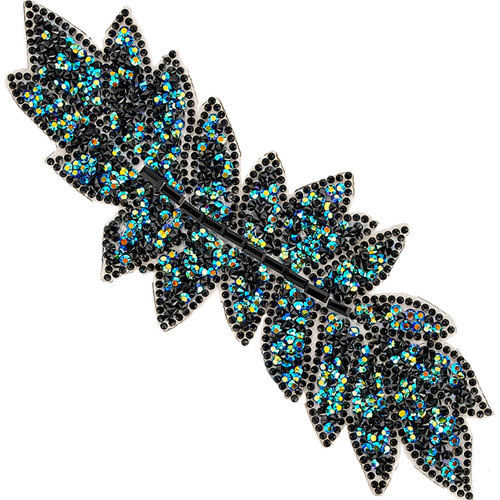 Best value when purchased in a package of 3 appliques. Can also be purchased as a single applique. This applique features a hot fix gel-backing which can be glued on with our normal adhesive line or applied with a heat press. Because there is no material holding the crystals in place, any movement during the heat fix application when the gel is warm, will cause the crystals to shift out of the original design. Applique measures 7.25" x 2.5" (7-1/4 x 2-1/2).