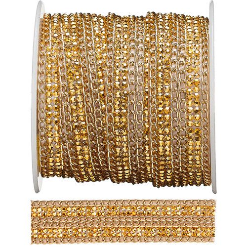Exclusive closeout pricing on Priceless Crystal Banding Gel Backed 531 Gold! This stunning gold-tone crystal banding features a flexible gel backing, making it perfect for easy application on gowns, dance costumes, pageant wear, accessories, and custom design projects. This discontinued trim is available only in limited quantities—once sold out, it will not return.