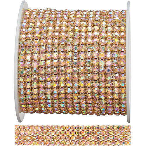 Exclusive closeout pricing on Priceless Crystal Banding Metal Set 4 Row Silk AB! This elegant metal-set banding features four rows of shimmering Silk AB crystals, offering soft golden tones with iridescent highlights—perfect for enhancing gowns, dance costumes, pageant wear, jackets, accessories, and couture embellishments. This discontinued trim is available only in limited quantities—once sold out, it will not return.