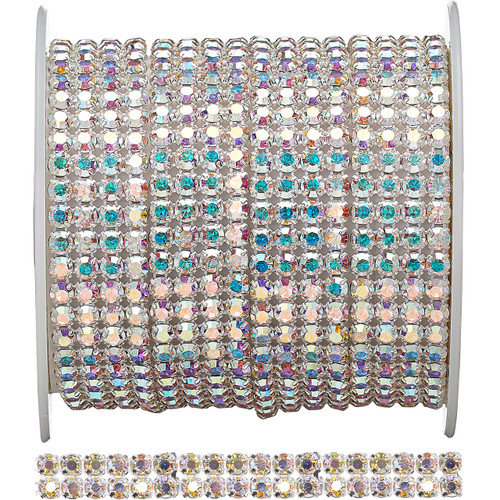 PriceLess Crystal™ Metal Set Banding features the high quality sparkle of genuine PriceLess crystals, set with metal settings on a strong shoestring material (1 row) or a sturdy fabric net (2-6 row). Each 3 Yard piece is a continuous piece of banding, however, you can easily piece together the banding for a continuous look. Rhinestone banding is different than rhinestone chain and is favored as our customer’s preferred rhinestone-by-the-yard choice for sewing on garments, princess sashes, and even wedding cake decoration!