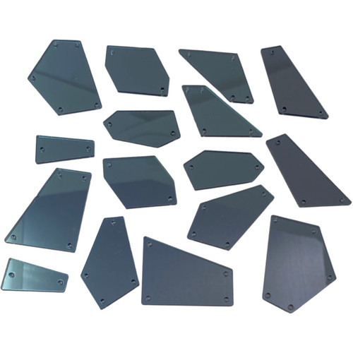 For a fun, geometric, abstract look, use this Shattered Mirror Mix from PriceLess Trims™ to make your design stand out! Easy to glue or sew on, these reflective, bright, mirror shapes create the look of shattered glass and are the perfect complement to your PriceLess Crystal™ designs.