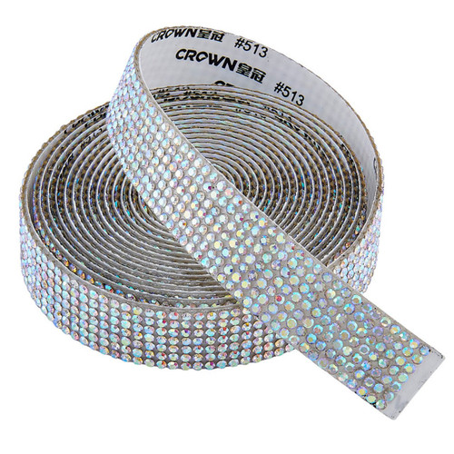 PriceLess Crystal Banding Crystal AB 5/8" (1.6cm)- 3 Yards. This banding is self adhesive with a strong adhesive for application on most hard surfaces. For fabric, use the self adhesive application and then, using a barrier material, apply heat for extra strong adhesion.